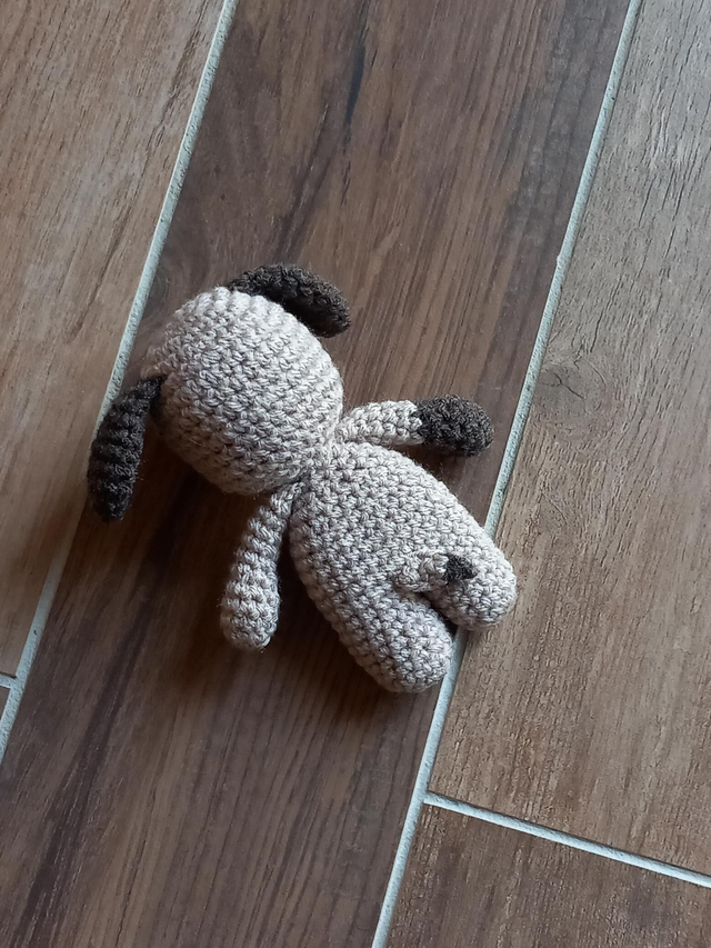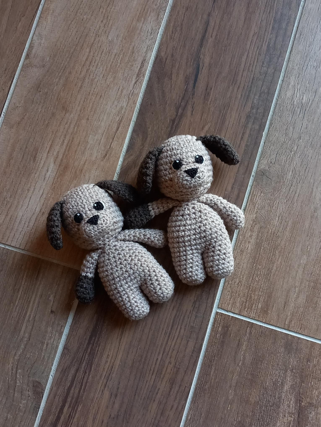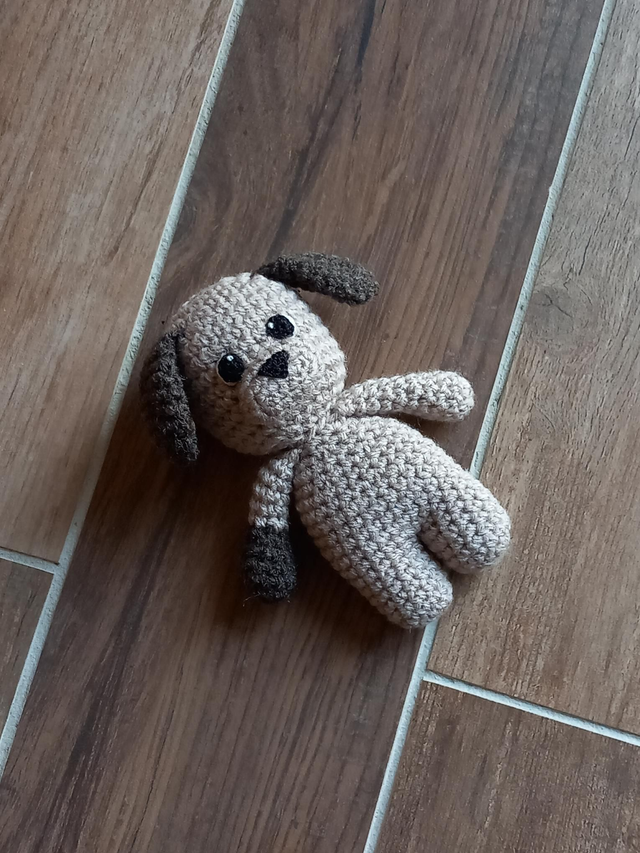 Petit chien beige et marron crocheté par mes soins